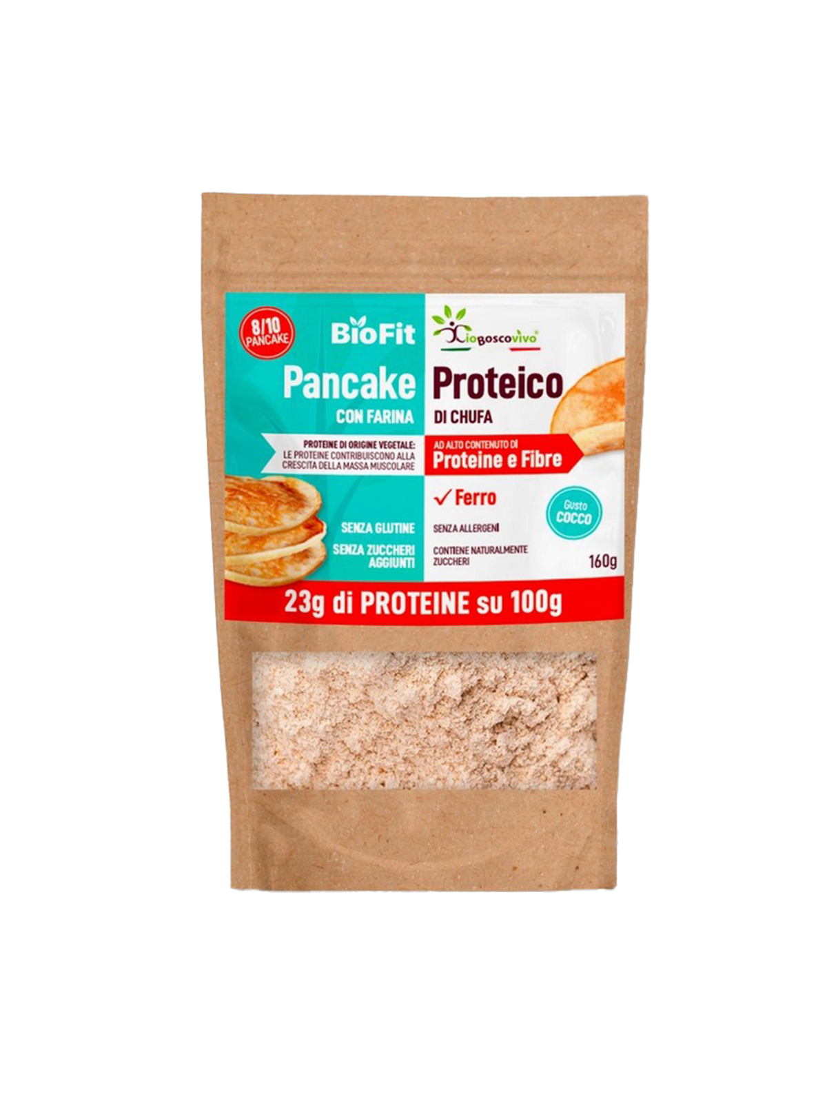 Ingrédients : Farine de souchet* (Cyperus esculents) 40 %, protéines de pois en poudre*, noix de coco râpée*, édulcorant 15 %, érythritol*, agent levant* (amidon de maïs*, tartrate de potassium extrait de raisins, bicarbonate de sodium)